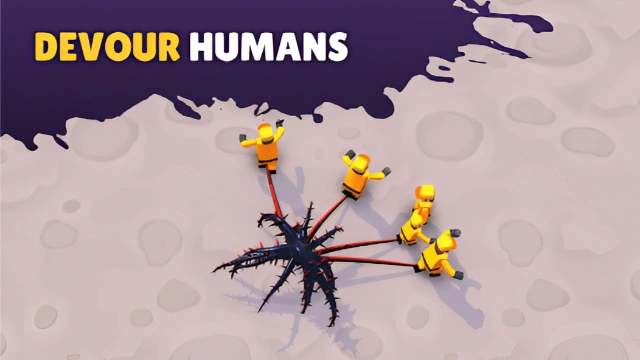 Defeat for Evolution: Become the ultimate alien overlord by defeating humans and evolving. Strengthen your alien's capacity, attack speed, and catching radius to devour foes more efficiently.