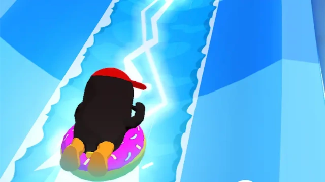 In aquapark.io, players race down a vibrant water slide, aiming to reach the finish line before their competitors. Along the way, players can bump others off the slide to gain an advantage and have fun navigating the twists and turns of this colorful, sunny adventure.
