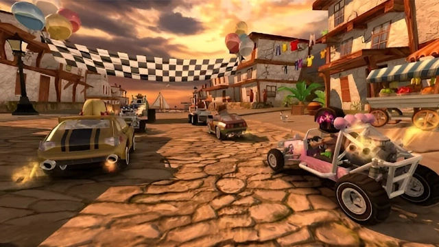 Drive into an action-packed, surprise-filled world of off-road kart racing mayhem! Race against a field of rival drivers, each with unique personalities and special abilities. Build a collection of crazy powerups, like Dodgeball Frenzy, Fireball, and Oil Slick. Unlock and upgrade a variety of cars, from dune buggies to monster trucks. Test your skills in 6 different game modes on 15 imaginative 3D race tracks, against a pack of tropical-loving rivals with a serious case of road rage!