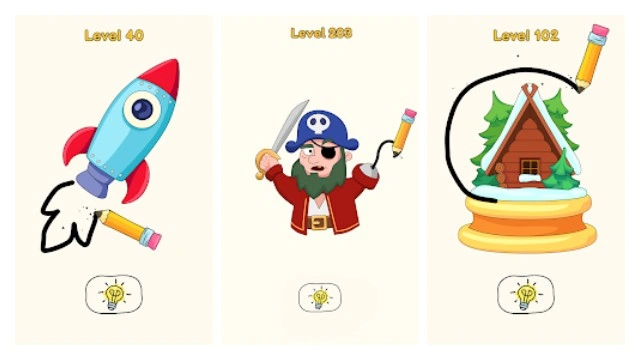 Use your finger to draw and outline the shapes of the parts that the drawings need, and then watch the game color and fill in the rest to complete the picture and take you on to the next challenge.