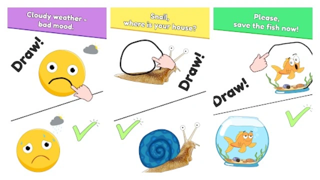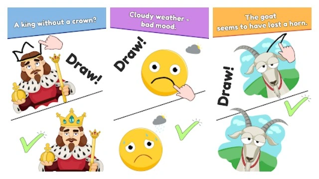 Engage your brain, your imagination and your artistic talents to identify the missing element and add it to the drawing in this delightful puzzle game that will get you thinking and make you smile time and time again.
