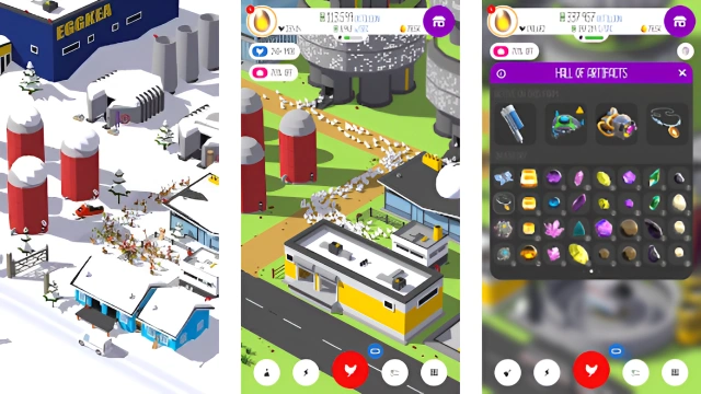 An incremental (clicker) game at its core, Egg, Inc. uses many elements from simulation games that give it a unique feel and play style. Instead of menus, you are presented with crisp and colorful 3D graphics and a delightful simulation of a swarm of chickens. In addition to choosing your investments wisely you must also balance your resources to ensure a smooth running and efficient egg farm.