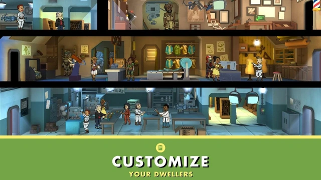 Get to know your Dwellers and lead them to happiness. Find their ideal jobs and watch them flourish. Provide them with outfits, weapons, and training to improve their abilities.