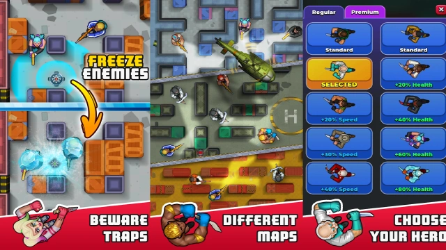 Whether it's running and hiding you have to play your cards right. Activate laser traps to lure enemies into your trap, then strike with precision and take them all down. With freeze mines and rockets flying towards you, you will need to be quick and cunning to succeed.
