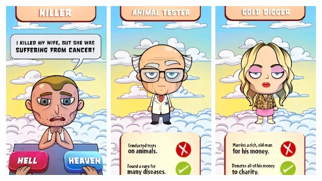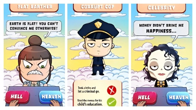 - Scroll right or left to send them to heaven or hell