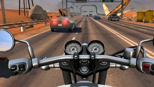 Head out and race as fast as you can to become the best new moto rider in the world! Race the traffic and complete the challenges to get real among the competition. Jump on your racing bike and ride in the endless busy roads and highways! Make near traffic misses discovering 4 unique locations: Suburbs, Desert, Snow and Night City in 4 different modes! Ride your motorcycle on a highway, interstate, or the autobahn. Never forget that riding a motorcycle can be fun, but it can also be dangerous! Roads and highways are full of speeding cars – they can bother you!
