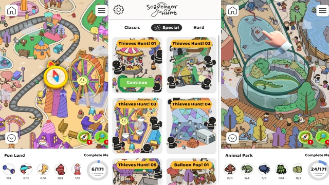 Search and find games have never been this fun! Collect hidden objects throughout the maps on your journey to unlock more locations in the Scavenger Hunt! Hidden pictures are everywhere - under a tree, next to granny, on the roof? Zoom in and swipe through the map to collect all the hidden objects.