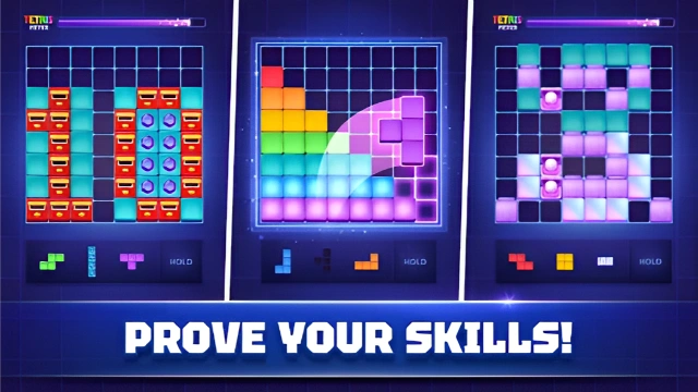 Clear rows consecutively to earn incredible combos and showcase your Tetris Block Puzzle skills!