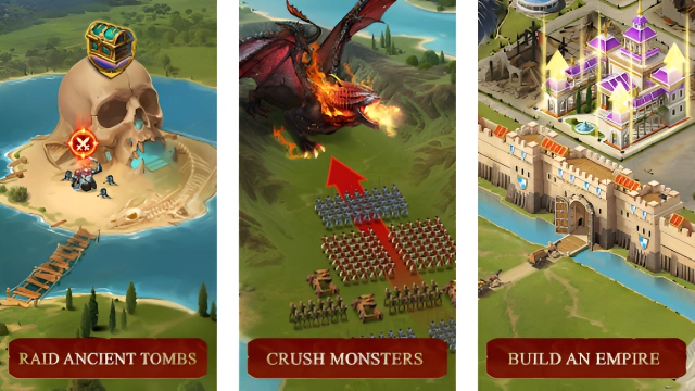 Gather heroes in a clan, farm a huge map full of treasures and monsters, promote your friends with titles, train a unique army, and beat foreign kingdoms!