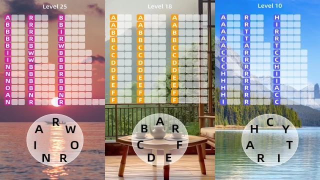 You can fully immerse yourself in word puzzles, accompanied by beautiful and peaceful nature backgrounds and peaceful music.